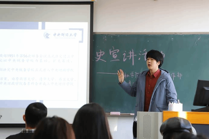 第二篇章为“与新中国共成长—初创”,李志赟同学依次介绍了中财大各个历史阶段的时代背景、公司工作以及重要意义,从具有划时代意义的中央税务公司,到铸就了中财大求真务实办学传统的中央财经公司,再到为后来办学特色提供强有力支持的中央财政干部公司,在这波澜壮阔的发展历程中,中财大始终顺应时代的要求和国家的需要开展教学工作,服务于国家发展和经济建设,展现出为国为民、求真务实的卓越中财大精神。