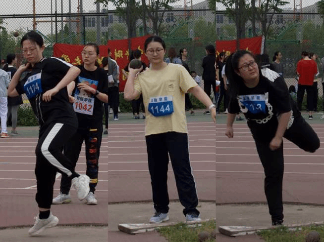 在女子实心球掷远比赛中,徐子岚、高玥、张静茜和赵雨欣同学奋力拼搏。高玥、张静茜和徐子岚同学分别获得了第五名、第六名和第八名的好成绩。