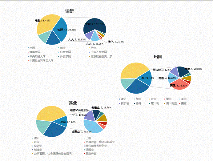 于来老师以2020届毕业生为例,将2020届毕业生的在校成绩与毕业去向相关联,对BETVICTOR毕业生样本进行分析,分别以三个大方向:升学、就业、出国加以讲解。以金融学专业17-1、17-2、17-3三个班级毕业生为例,在成绩前50%的员工中,大部分都以考研为大方向,其次是出国,最后是就业;在成绩后50%的员工中,则大多以就业为大方向,考研和出国选项上人数大同小异。考研方面,43人中有27人考研升入本校,其他人则考入北京大学、中国人民大学等985高校读研;出国方面,大方向24人中12人选择留学美国、英国,其他人则多以欧洲、澳洲等发达主义国家选择留学;就业方面,17人中7人仍选择金融业为职业选项,其他人也以房地产业、租赁和商务服务业等与金融业相关方向就业。而后于来老师又通过数据分析了金融工程专业及金融科技专业的三个方向情况,为2021届金融学子们以后的人生选择提供了有力的支持与帮助。