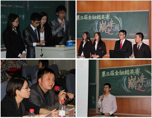 近日,第三届金融精英赛圆满落下帷幕。本次比赛由公司金融学术研究会主办,历时近一个半月。大赛由预热讲座、初赛、复赛及决赛等环节组成,大赛吸引了全校近400名同学参与,邀请到来自安盛集团、渣打银行北京区、光大证券公司的校外嘉宾担任培训和评审工作。