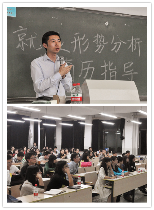 2013年9月27日晚7点,为帮助公司2014届毕业生摸清就业形势,做好应聘准备,提升自身竞争力,公司在主教117教室举办“就业形势分析与简历指导”讲座。讲座特邀公司就业指导中心杨晨亮老师作为主讲。公司研究生工作办公室邹晓琳老师和2014届研究生、本科生参加了本次讲座。