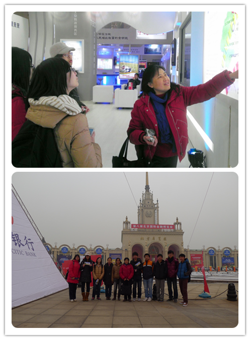 12月2日下午,2011级国际货币与国际金融班同学在班主任赵建平老师的带领下,参观了在北京展览馆举行的第八届北京国际金融博览会。此次博览会以“金融服务实体经济 支持首都创新发展”为主题。展览规模展览面积达23000平方米,展位900余个,共吸引到国内众多金融机构前来参展。