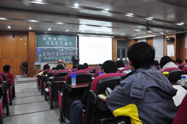 讲座上,张学勇首先以自身的求学经历拉开序幕,他语言诙谐、幽默风趣,不仅良好的切入了本次讲座的关键词“学术”,更活跃了现场气氛,为本次讲座打开了一个良好开端。张老师将讲座分成了三个部分:大学的价值、金融的含义、学术的意义与论文的写作。在谈到“大学的价值”时,张老师提出:大学不仅是传授知识的乐园,大学更是创造新知的天地。员工在大学期间应努力培养自己的沟通能力、组织能力、学术能力等。在“金融的含义”这个问题上,张老师的讲解按照“什么是金融——金融工作者具备哪些能力——如何具备这些能力”这条主线展开,为众多听众对“金融”一词展开了深入的剖析。最后,他指出:学术的意义在于使知识立体化,只有不断的学术训练才能将书中的知识立体化。对于论文写作方面,从选题、文献参考、数据收集、计量检测及写作要求等角度做出了明确指导。本次讲座采用了大量的事实例证,使得本次讲座更严谨,更具信服力。