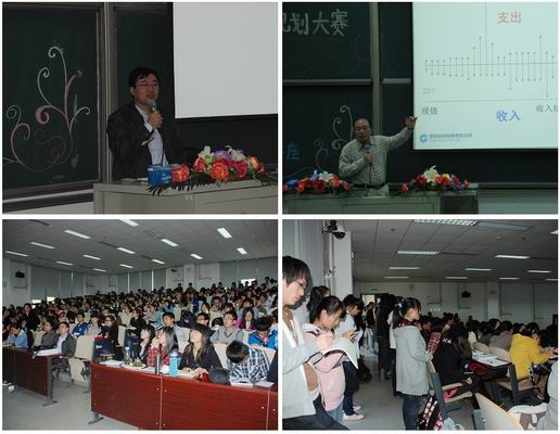 王汝成先生从中国家庭理财在2000年后的快速发展入手,为同学们介绍了我国近十年的理财发展,并针对比赛侧重企业的财富管理的特点提出,要从个人财富管理入手,研究企业财富管理的建议。讲座的内容主要分三部分:为什么要进行财富管理、如何进行财富管理规划、以及资产配置中的关注重点。首先,王先生在阐释为什么要进行财富管理前,先对财富管理和财务规划重点的定义进行了具体的阐释,让同学们对财富管理有清晰的认识。接着,王先生通过对一个人一生的收入和支出等数据的展示,让同学们从这个简单的例子中了解到个人理财的重要性。但同时,王先生也指出了以上案例存在的问题,提出长期的人生理财规划仍需要考虑众多其他因素。其次,关于如何进行财富管理规划,王先生利用一个案例的《全方位理财规划报告书》为参加比赛的同学们详细介绍了理财的目的、理财规划的主要内容以及理财规划报告书的格式,让参赛同学对报告书有了全面的学习。他结合案例详细说明了金融工作中常用的计算方法和具体规划方法。王先生特别提出了希望同学们建立科学的理财理念和善于发现理财规划中存在的问题。最后,在讲述关于资产配置中的重点时,王先生提出了许多理论诸如家庭生命周期理论、结构性产品原理等内容。另外,在同学们的要求下,王先生还重点介绍了信托行业的状况以及其运作方式,为许多对信托仍不熟悉的同学做出了详细易懂的解释。