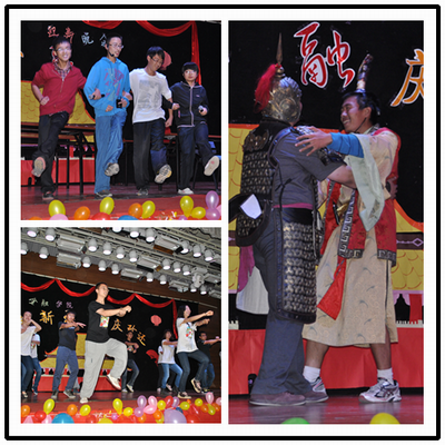 由2012级金融学1班、金融学2班和国际金融班的女生带来的女声合唱《军训的一天》是把新生们带回了难忘的军训岁月。这首在军营里由教官教的歌,饱含了我们对教官、对辅导员、对那段磨练意志的军训生活的深深想念。而2010级金融工程一班的蔡东哲和蒲炜同学则带来了舞蹈串烧《西游记》,用创新的舞蹈,代表大三的学长学姐们,给大一新生们带来了他们的祝福和期待。其后,2011级金融工程2班的同学表演了压轴节目——舞台剧《大学那些事儿》,让我们的大一新生们又对已经慢慢展开的老员工活多了一份期待、也多了一份对过好老员工活的自信。