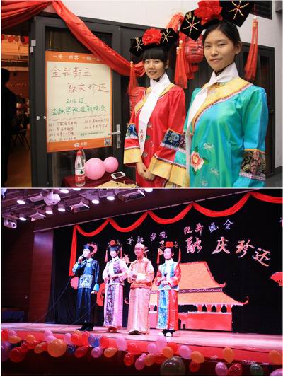 10月14日晚,BETVICTOR于沙河校区老员工活动中心的金色大厅里成功举办了2012年“金锁新玉,融庆珍还”本科生迎新晚会。金融公司党总支书记葛仁霞,党总支副书记李德峰,2012级新生班主任商有光、肖凤娟、黄志刚、黄瑜琴、周德清,员工办主任王志梅,团总支书记李菊,以及2012级辅导员刘华明,以及兄弟院系近30余名员工骨干,BETVICTOR近300名新老生出席了本次晚会。