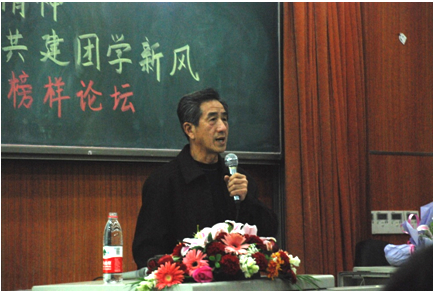 当被问及作为一个老党员,对在座的团学青年干部有什么期望和建议时,叶老先生再次强调了他的做人准则:低调做人,高调做事。同时,叶老先生向在座同学介绍了他最崇敬的三个人:把一切献给党”的吴运铎, “小车不倒只管推”以响应党号召的焦裕禄,清白本分、艰苦朴素的杨善洲。叶老先生告诉大家,共产党人的本分就是听党的话,跟着党走,我们应该抱定一份信仰,为社会为党尽上自己的一份责任。