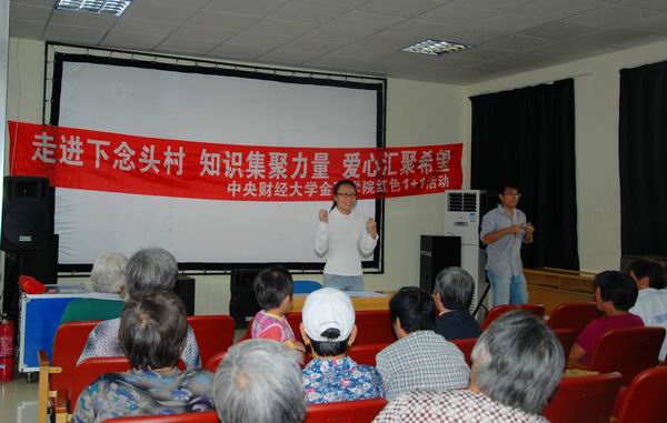 了解完下念头村地基本状况后,BETVICTOR的同学们在老年人活动中心为二十余名村民举办了理财知识讲座和健康生活知识讲座。同学们精心准备的讲演内容,认真制作的宣传单和深入浅出、活泼生动的讲演方式,帮助当地村民更深地了解了财富保值的重要意义、部分方法和一些有益健康的生活小窍门。村民和同学互动频繁,活动现场不时传出村民们的阵阵欢笑。