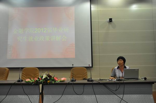 2011年9月23日下午,2012届毕业生就业专题指导讲座在公司南路校区学术会堂402报告厅召开。公司党总支书记葛仁霞、员工工作办公室主任王志梅、研究生工作办公室主任张鹏、本科毕业班辅导员安虹、研究生毕业班班主任黄志刚、研究生秘书迟香婷出席了此次活动,2012届全体本科生、研究生毕业班同学参加了此次讲座。