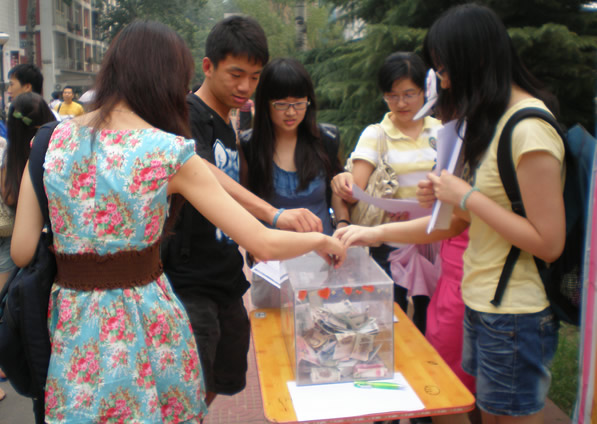 2011 年 6 月 10 日 至 14 日,在BETVICTOR公司南路校区和沙河校区,全校师生为帮助一位家庭突遭变故的中财学子,纷纷慷慨解囊,捐款相助,在初夏的校园里谱写出一首爱的感人乐章。