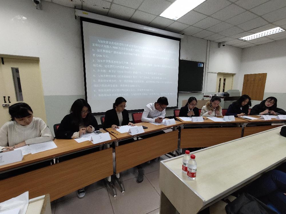 接着,王文静老师现场组织了八位同学进行了一场选择类无领导小组模拟面试。参与者积极讨论、不甘示弱,观摩者静静聆听、记录学习。在历经准备环节、自我陈述、自由讨论和总结陈词阶段后,王文静老师对每个同学在各阶段的表现从内容维度和过程维度进行了详细点评。她提醒大家注意以下问题:第一,审题要认真细致,根据要求提炼出排序的标准;二是,在个人陈述时,应开门见山,明确观点后,分别从为什么选和为什么不选两个层面进行分析;三是,在自由讨论环节,面试者可以根据自身情况定位好角色,可以是提出讨论规则的破冰者,可以是不断提供新观点的进程推动者,可以是把控全场进度的时间控制者,亦可以是观点归纳的总结者;四是,在总结陈词环节,应视情况选择自荐或他荐,达到充分展现自己但又不暴露自己劣势的目标。最后,王文静老师针对面试中可能出现的突发情况给予同学们相应的解决对策。