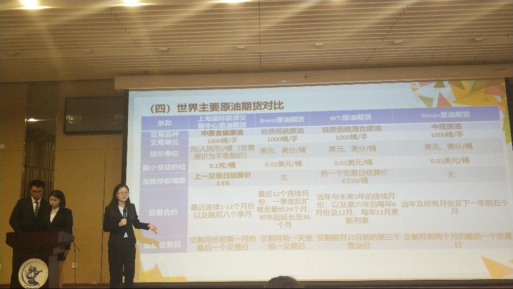 复赛以线下论文的形式进行,时长一周。各支队伍分别对原油期货、共享经济和独角兽等金融现象进行了细致而深刻的研究分析,用严谨的语言将结论呈现在论文中,经过评委老师的审阅,最终“金英队”、“三生万物队”、“有一只队伍”杀入决赛。
