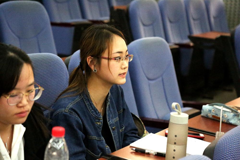 第一场比赛于14:30正式打响,正方是来自金工17-1,17-2的“勇战群儒队”,反方是来自金融17-1的“说的都队”,双方就辩题“当今中国是否应当降低刑事年龄”展开了激烈的辩论。正方从社会现实需要和充分发挥法律作用等方面开篇立论,并深入阐释。而反方从当今社会教育水平不平衡,不宜对弱势群体苛责等方面进行了强有力的辩驳。纵观整场比赛,双方辩手你来我往,激烈交锋,既体现了同学们的青春与活力,也营造了良好的思辨氛围。最终“勇战群儒队”更胜一筹,夺得辩论的胜利,而最佳辩手也荣归该队的付雨婷同学。