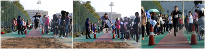两点半后趣味项目正式开始,随着一声尖锐的哨音,趣味项目拉开帷幕。绑腿跑项目中,金院的运动健儿们手臂挽着手臂,“121212……”的铿锵口号响彻赛场,最终金院的健儿们以整齐步伐嬴得了绑腿跑项目第一的好成绩。随后的旋风跑项目中,金院健儿们有条不紊地完成每一个部分,成为名副其实的“旋风者”,也收获了团体第四名的战果。