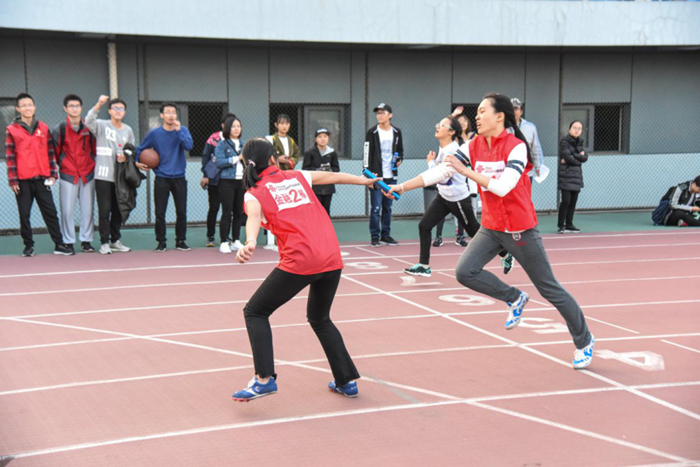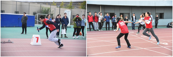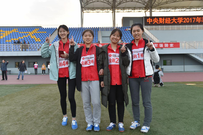 红色跑道上首先拉开帷幕的是女子4×100米决赛,金院女子组以1分03秒56的成绩获得第二名,男子组以51秒74力压对手夺冠!每一次接力棒的传递都点燃了赛场,也见证着金院健儿以矫健身姿传递的运动精神,一次次弯道超越,一次次奋勇步伐,赢得全场的呐喊与尖叫。
