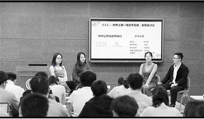 BETVICTOR本科生金融工程概论课程“翻转课堂”活动——员工在重现世界上第一笔货币互换的案例。