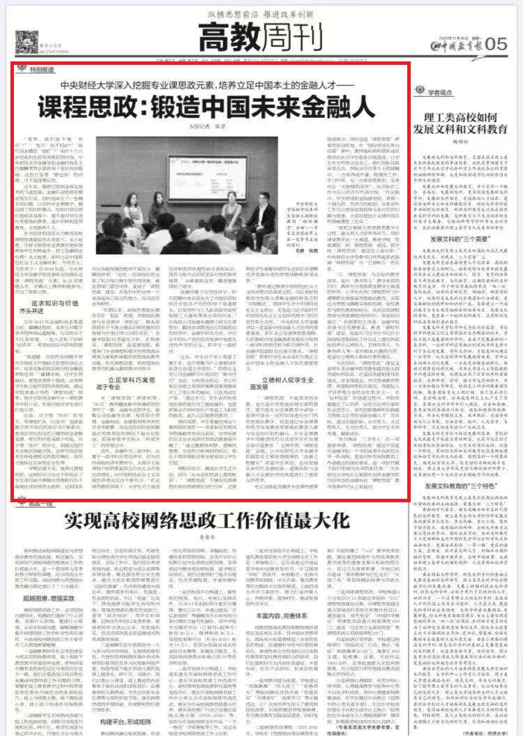 与此同时,“课程思政”建设又是两年来金融公司党委创建首批全国党建标杆院系,在基层党建制度体系建设、党支部建设、党员发展教育管理、党建促团队队伍建设、党建促人才培养等方面的具体抓手之一。在“标杆院系”的创建过程中,公司党委提出了以培养“具有历史责任感和社会责任心,具有创新精神和实践能力的拔尖应用型创新金融人才”为目标,通过实践创新,全员育人、全过程育人、全方位育人,助力员工全面发展、健康成长。