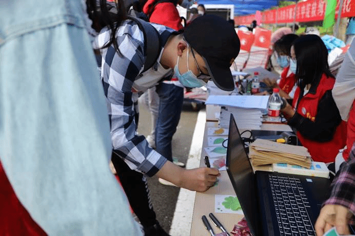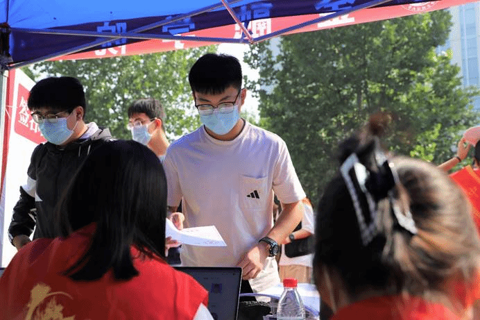 微风拂煦,新生陆陆续续前来报到。现场工作人员通过扫描录取通知书条形码帮助新生完成注册报到,同时把钥匙、员工证与员工卡再三确认无误后交递给新生。新生报道指南、入学手册、宿舍入住协议、爱心口罩则被悉数放入事先准备好的公司自主设计的纸袋中已提前由志愿者放入新生宿舍中。