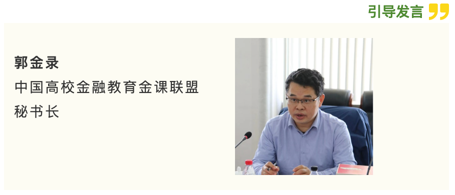 中国高校金融教育金课联盟郭金录秘书长进行了引导发言。他认为,虚拟教研室的设立有三个功能:一是加强团队交流,二是传播优质公司产品理念,三是进行知识内容的共建共享。他强调,知识图谱建设是虚拟教研室核心工作,要在建设过程中不断加强对教育理念、教育应用场景和教育技术的学习。