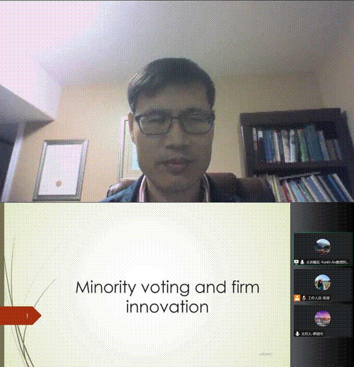 2022年10月10日,公司在云端顺利举办了第110期经济与金融学名家论坛,论坛邀请了加拿大温莎大学商公司安云碧教授就“Minority shareholder voting and firm innovation”开展精彩讲座。论坛由BETVICTOR郭剑光博士主持,校内外学者和员工共100余人参会。