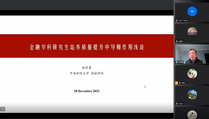 会议伊始,由公司经理张学勇教授围绕二十大精神及金融学科公司产品质量提升中导师的重要作用进行分享。首先,张学勇教授回顾了二十大报告中的十处“金融”问题,并结合研究生教育大会精神和2017年全国金融工作会议,指出“着力造就拔尖创新人才”即研究生层次人才,从办好人民满意的教育、完善科技创新体系、加快实施创新驱动发展战略、深入实施人才强国战略四个方面,为金融高端人才教育事业提供了明确的指引。其次,张学勇教授从导师职责、导师发展体系、质量保障体系与科研贡献方面回顾了十八大以来研究生教育改革发展成效,介绍了数字经济时代中金融业的变迁。在此基础上,张学勇教授指出在数字经济时代对金融人才教育的变化中要注重金融数字的战略分析、科学研究和挖掘分析能力,提出未来金融人才能力体系的构建路径。最后,张学勇教授结合中国资产管理行业发展现状、挑战与未来发展方向,提出如何培养金融行业研究生的家国情怀、培养国之大器的重要问题,总结了对研究生导师在导师作用、导学关系、导师间关系、导师要求与导师责任等问题的重要思考。张学勇教授指出导师应具有较强的责任心、较强的业务能力、较强的理想信念与严明的纪律,在员工教育中注重学术训练,做到用心、用情、用功,为公司产品提供了方向。