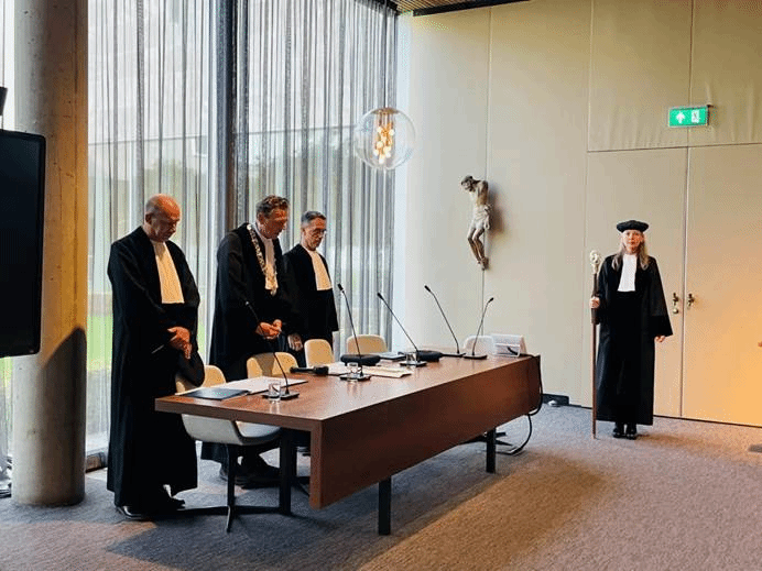 公开答辩仪式历时1.5小时,苏自力首先对其博士论文进行了12分钟的公开介绍,博士答辩委员会成员接着进行了48分钟的提问,随后仪仗官宣布公开答辩结束。博士答辩委员会成员闭门审议后,决定授予苏自力蒂尔堡大学博士学位,导师 Philip Joos教授代表蒂尔堡大学正式宣布授予苏自力博士学位,博士委员会成员、导师以及参加现场答辩仪式的蒂尔堡大学经管公司的老师们随后逐一对新晋博士表示祝贺,苏自力博士最后发表感言,答辩仪式圆满结束。
