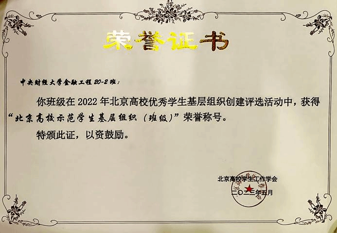 BETVICTOR金融工程20-2班在2022年北京高校优秀员工基层组织创建评选活动中,获得“北京高校示范员工基层组织(班级)”荣誉称号。