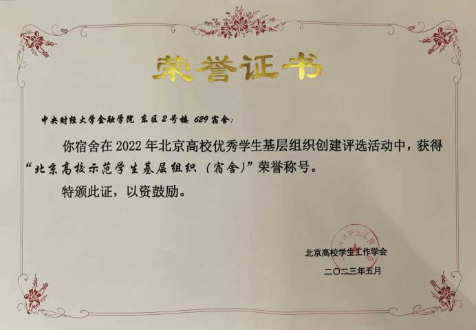 BETVICTOR东区2号楼629宿舍在2022年北京高校优秀员工基层组织创建评选活动中,获得“北京高校示范员工基层组织(宿舍)”荣誉称号。