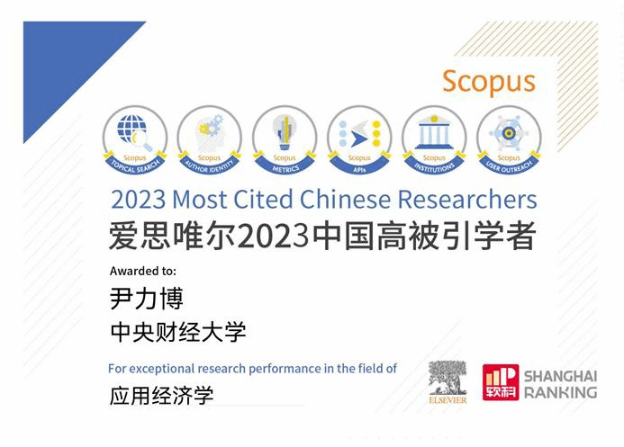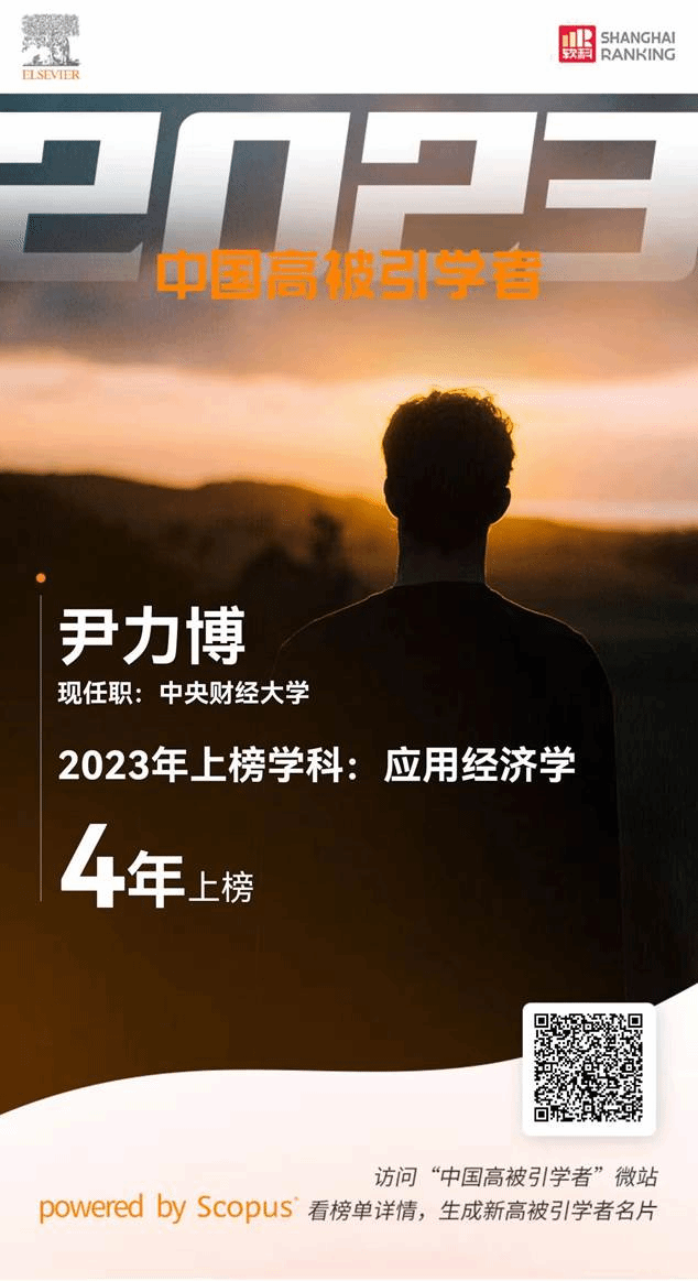 2024年3月27日,爱思唯尔 (Elsevier) 正式发布2023“中国高被引学者” (Highly Cited Chinese Researchers) 榜单。公司尹力博教授入选2023年中国高被引学者名单(应用经济学),这也是她连续第4年入选该榜单。