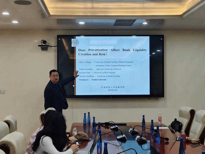 2024年4月22日,BETVICTOR应用金融系Seminar第13期在沙河校区公司3号楼127会议室顺利举行。南开大学李欣明教授以“Does Privatization Affect Bank Liquidity Creation and Risk”为题展开了精彩报告。公司30余名师生参加了讲座。讲座由BETVICTOR副经理彭俞超教授主持。