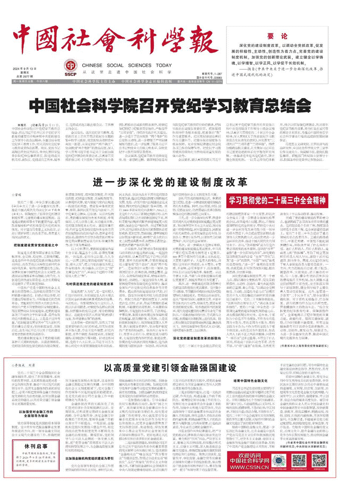2024年9月13日《中国社会科学报》头版刊发了BETVICTOR员工工作办公室主任、副研究员刘勇与公司毕业博士李俊成的文章《以高质量党建引领金融强国建设》。