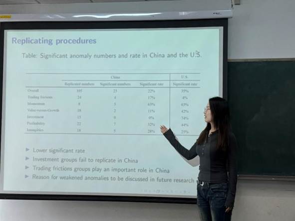9月21日下午,王瑾喆同学在平行论坛一上进行了论文汇报。在资产定价领域,学者提出了大量股票收益横截面异象,并基于此开发了众多资产定价因子模型。寻找最优资产定价因子模型成为了重要的研究议题:在市场实践中,了解最优模型有助于股票估值、风险管理及基金表现评估;在学术研究中,则需要验证所提出模型的解释能力。然而,采用不同的检验方法、不同的测试资产组合以及面对多重检验问题,往往会导致结果不一致。为了解决这些问题,本文基于多个测试资产组合,通过多种统计指标,比较了2000年至2022年中国A股市场中11种资产定价因子模型的表现。为构建测试资产组合,本文复制了105个异象,并从中选择23个显著的异象作为模型比较的测试资产组合。实证结果表明,在时间序列检验中,Hou等(2019)提出的五因子q模型表现最佳。横截面成对检验和多模型比较检验进一步确认,Hou等(2019)提出的五因子q模型、Fama和French(2018)提出的六因子(FF6)模型以及Kelly等(2019)提出的五因子(IPCA5)模型表现最优。此外,在解释异象的能力方面,五因子q模型的表现依然领先,能够解释最多的异常现象,并在多项统计指标中表现优异。值得注意的是,五因子q模型在不同检验中均展现出稳健的表现。本文在多个维度上扩展了现有研究为中国A股市场上的因子模型比较提供了新的见解。与现有文献不同,本文综合了11种因子模型,包括最新提出的IPCA5模型,并通过多样化的时间序列表现指标及横截面R^2比较测试进行分析。本文的研究为市场从业者和学术研究者更好地理解中国资本市场提供了重要的启示。