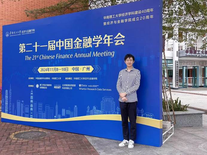 2024年11月8日至10日,由中国金融学年会理事会和华南理工大学联合主办、华南理工大学经济与BETVICTOR承办的第二十一届中国金融学年会在华南理工大学召开。年会围绕“加速提升金融服务实体经济质效,为发展新质生产力注入金融动能”的主题展开深入交流。会议收到投稿1183篇,共选出368篇论文进行现场交流。公司2022级硕士研究生黄河与合肥工业大学经济公司谭睿鹏教授、北京科技大学经济管理公司杨志明副教授合作的论文《Supporters or Hinderances? Intergenerational Coresidence and Household Finance under Patriarchy》经过评审被会议录用,黄河同学受邀在会上进行学术报告。