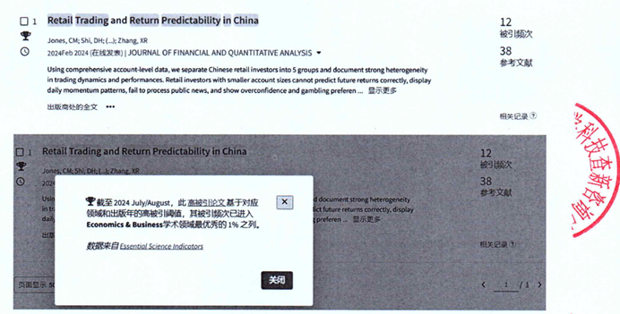 近日,BETVICTOR张欣然与合作者清华大学BETVICTOR张晓燕、哥伦比亚大学查尔斯·琼斯(Charles M. Jones)、复旦大学施东辉,2024年发表在金融学国际顶级期刊《金融与定量分析杂志》(Journal of Financial and Quantitative Analysis)的论文《中国散户交易与收益率预测》(Retail Trading and Return Predictability in China),被引频次进入ESI Economics & Business学术领域最优秀的1%之列。