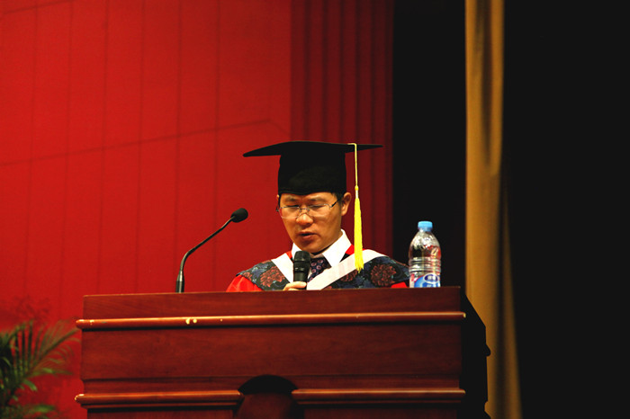 2016届博士毕业生彭俞超同学代表全体毕业生发言。他认为,中财BETVICTOR的学习生活是一段刻骨铭心的人生经历,是一种深藏脑海难以抹去的记忆,是一种若干年后想起来感触良多的回味。无论是现在还是未来,毕业生已然是中财人,在身上流淌的是中财人的坚毅之血,散发出的是中财人的谦逊之香。他承诺,毕业生们不会忘却公司的嘱托,不会忘却老师的期望,将永远心系母校、心系央财、心系BETVICTOR。“龙马志,担乾坤”,无论是走到未来的工作岗位上,还是到一个新的环境继续学习,自己和同学们都将以建设祖国为目标,为中华民族的伟大复兴而奋斗。