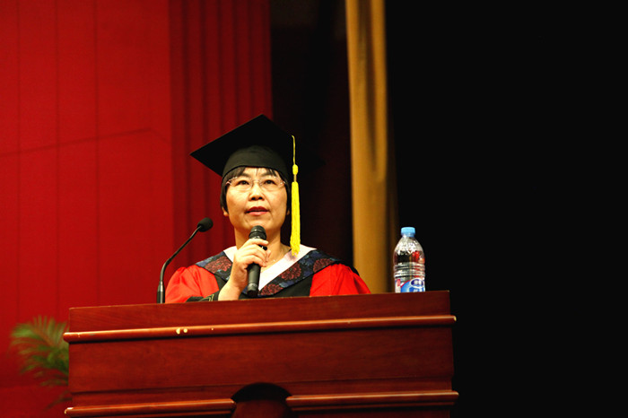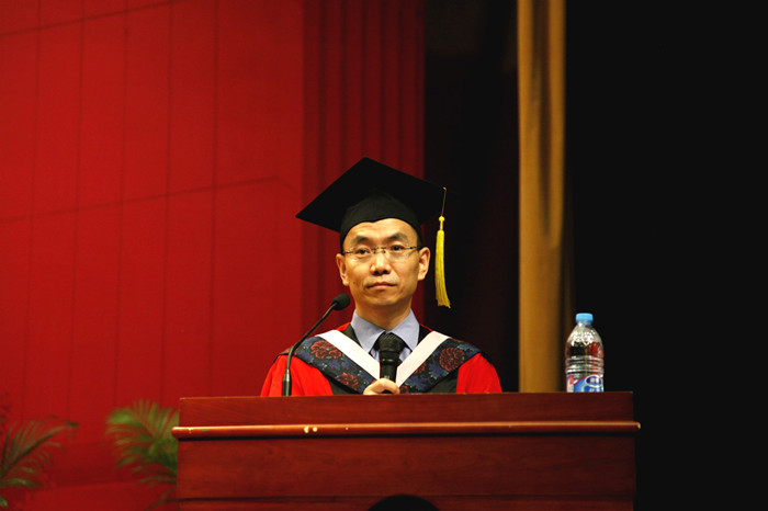 主持公司工作的李建军教授代表公司向2016届全体毕业生致辞。他首先向顺利完成学业的毕业生们表示祝贺,向倾注了智慧和心血的老师们致以诚挚的感谢和崇高的敬意,并向前来参加毕业典礼的员工家长和亲友们表示热烈的欢迎。在致辞中,李老师从毕业生未来将“如何扮演好自己的角色,如何应对未来的不确定性,如何实现内在心智的成长”三个方面表达了他的殷切期望。他说道,对于未来如何扮演好自己的角色,每个人不可能超越自己的时空,同时担当着特定的角色,这是自己选择和奋斗的结果。在特定的角色中,应追求担当与责任、自我与角色、内在与外在的一致性;金融是资金的融通,也是资源的融通,融通就会跨界,跨界就会有不确定性,跨界越大越存在不确定性。应当学会接纳、包容、欣赏进而去应对;人生就是动态随机过程,要关注内在的声音,注重担当与修为,淡定与从容。对于如何实现内在心智的成长?他认为,成功不仅仅是通过一个个事件达成预期目标,而应当是个体价值得到社会认同,真正的成功应是社会性的、时代性的,这样才能成就天地之间大写的“人”;他希望毕业生对国家、民族和社会要讲情怀;要感恩大地、感恩父母、感恩国家、感恩社会、感恩公司、感恩同学;要讲诚信,守规矩,要头脑清晰,坚定正向,稳定心态,在成长中走向心智成熟。