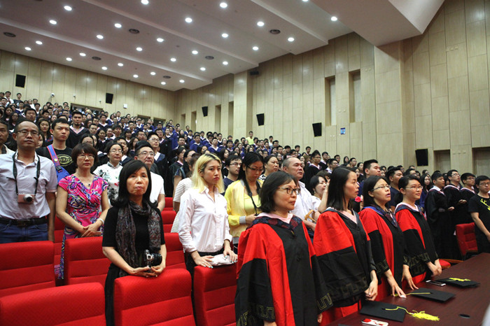典礼在嘹亮振奋的《义勇军进行曲》中拉开了帷幕。应展宇副经理宣读了《关于2016届本科生毕业及授予学士学位的决定》,党总支副书记谭小芬宣读了《关于2016届研究生毕业及授予学位的决定》。在随后的优秀毕业生表彰环节,党总支书记葛仁霞宣读了《关于表彰2016届优秀毕业研究生的通知》。葛仁霞书记和李建军副经理(主持工作)为北京市级优秀毕业生颁发了荣誉证书,国家级教学名师李健老师、应展宇副经理、经理助理黄志刚老师、公司分工会主席李宪铎老师、国际金融系主任张碧琼老师、应用金融系主任韩复龄老师为校级优秀毕业生颁奖并合影留念。
