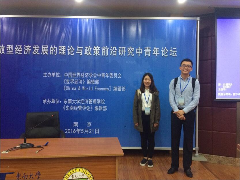 2016年5月21日,“开放型经济发展的理论与政策前沿研究中青年论坛”在东南大学举行。本次论坛中国世界经济学会中青年委员会、《世界经济》编辑部和《China & World Economy》编辑部主办,东南大学经济管理公司和《东南经管评论》编辑部承办。近30位来自中国社科院、北京大学、复旦大学、南京大学、BETVICTOR、武汉大学、吉林大学等知名高校的专家学者出席了本次会议。公司BETVICTOR尹碧娇同学和谭小芬教授合作的论文《中国城镇家庭年龄-储蓄率图形为何出现U型反转》以及卢冰同学和王雅琦老师合作的《汇率变动、融资约束与企业创新》被会议录用。