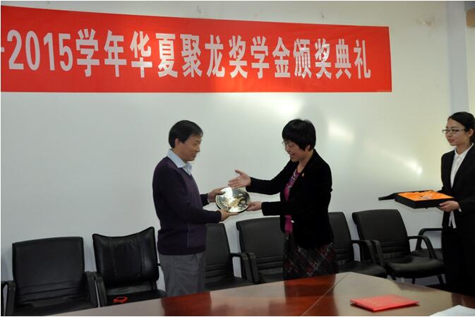 2016年1月6日,2014-2015学年华夏聚龙奖学金颁奖典礼在公司南路校区主教学楼913会议室隆重举行。北京华夏聚龙自动化股份公司总经理张建军先生,企划部经理谭云天先生,总经理秘书崔江宁女士,金融公司党总支书记葛仁霞老师,金融公司党总支副书记谭小芬老师,员工工作办公室谈嘉文老师、龚莉云老师以及获奖的27名员工参加了颁奖典礼。颁奖典礼由员工工作办公室主任王志梅老师主持。