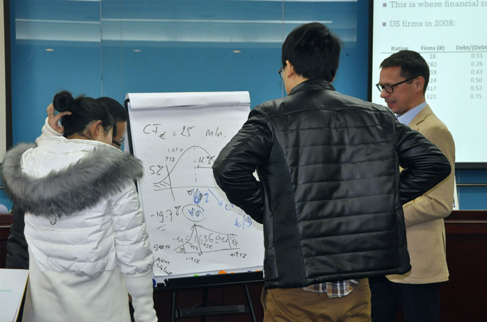 1月6日上午,在学术会堂702同学们迎来了Frans de Roon教授。在五天的课程中,教授结合案例生动地引入了公司财务管理的知识,就公司资本成本、现金流、资本结构等进行了深入的讲解。教授先就课程知识点进行讲解,然后进行案例分析,软件操作,最后给员工们案例自己操作练习。同学们练习时,教授时不时走下去进行操作指导并与同学们互动,极大提高了大家的学习效果。课间,同学们积极向教授请教、互相讨论。