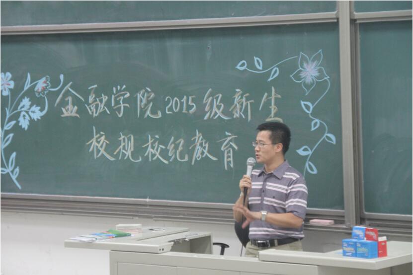 2015年9月9日下午16:10,金融公司党总支副书记谭小芬老师为全体2015级新生进行了校规校纪和安全教育。他首先提出安全健康是人才培养的基础,指出了安全教育的重要性;然后,他具体介绍了安全规范和校规校纪,着重强调大学考试中坚决抵制作弊行为,以及作弊行为带来的终身无法弥补的后果;接下来,他对金融行业进行了具体的分析,鼓励大家做国际化的金融人才,开阔视野,提升综合素质,在中外对比特别是中美对比中感受中国金融业的广阔未来;最后,他为同学们提出了几点建议,突出了大学时代语文数学英语学习的全新内涵。讲座中深刻的道理、朴实的话语,结合丰富生动的实际案例,让同学们在轻松的氛围中受到了良好的教育。
