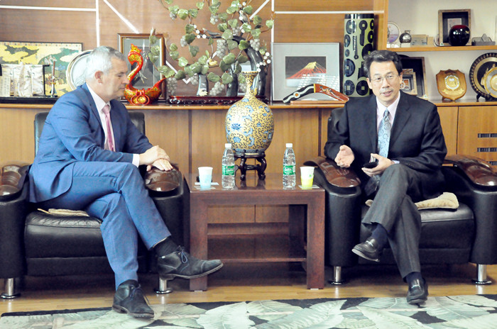 接下来,张礼卿经理与张学勇副经理向对方介绍了两校金融学博士合作办学项目招生的基本情况以及工作安排。张礼卿经理表示此次金融学博士合作办学项目是我国目前首个被教育部正式批准实施的中外合作金融学博士项目,公司及公司都非常重视,希望此次合作能取得不错的成绩。Kees Koedijk经理也表示非常感谢公司对整个项目的申请与管理所做出的努力,蒂尔堡大学也将不遗余力对之后项目的开展提供积极的协助。双方达成共识,将发挥各自的学科优势,在员工培养与交流、教师互访、合作科研以及硕士合作办学教育项目等方面开展实质性的合作,并希望今后能开展更深入的交流与合作。