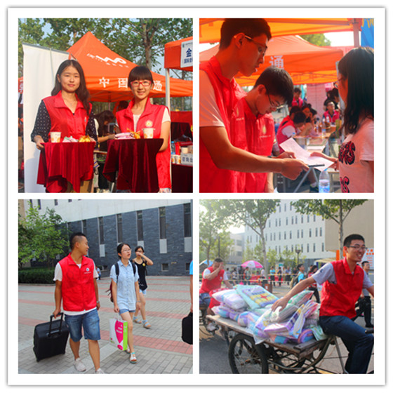 旭日初升,一如即将踏入中财校园的金院新学子;大洼风凉,掩不住金院志愿者们心中的洋溢热情。绿树掩映的街道上那一群群红马甲让人倍感亲切:遮阳棚里发放新生入学必备资料的学姐重复着同样的动作,而不辞辛苦;骑着板车穿梭在校园里搬运行李的志愿者们虽然大汗淋漓,却仍洋溢微笑;海报前为学弟学妹拍照留念的摄影工作组手持单反,记录迎新美丽点滴……所有这一切都将成为刚刚步入大公司园的学弟学妹们记忆中最美的一段,相信他们会将这温暖与感动传递下去。