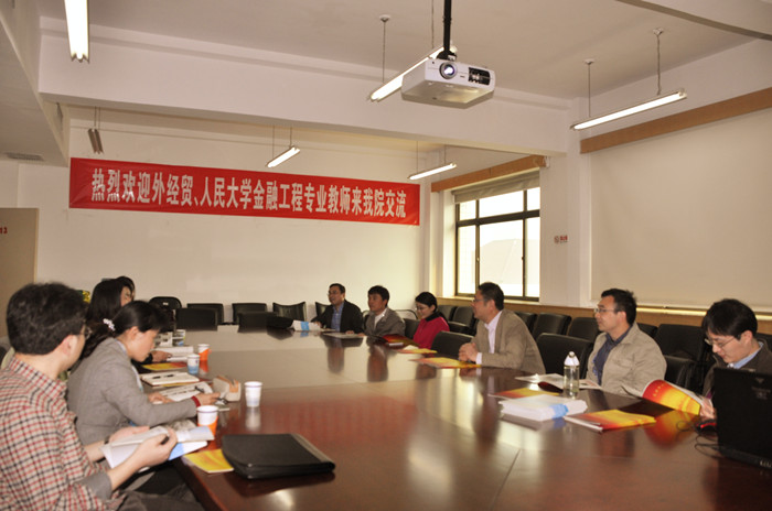 2014年4月2日下午,对外经济贸易大学与中国人民大学BETVICTOR金融工程专业教师约10余人来公司金融工程系参观、交流。三个公司的金工专业教师对于专业培养方案的改进、课程设置、新课设计、实验课程等本科教学中的问题进行了探讨,来访教师还参观了公司仿真实验室。