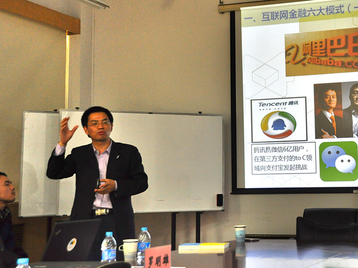 12月11日,北京软件和信息服务交易所副总裁、北软汇智投资管理公司总裁、中关村创业投资与股权投资基金协会副秘书长罗明雄先生来到中财,为同学们带来讲座《开启互联网金融创业新时代》。李建军副经理主持本次活动。