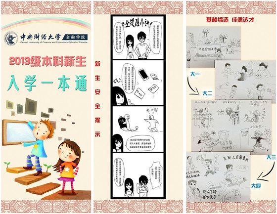 在去年公司《新生一折通》的基础上,今年公司丰富了新生安全教育的案例,并创新性地将各类案例制成漫画,十分生动形象并有效地提醒了新生应该防范的重点事件,漫画生动形象,深受90后同学喜爱。一本通上还附有入学教育周的活动安排、手绘校园生活地图等内容,可谓是新生们最实用的第一手资料。为了让新同学们在有需要时能够第一时间联系到公司领导、员工工作系统的老师们、班主任和班级助理们,该一本通上详细列出了以上老师和同学们的电话、邮箱信息,并加入了校医院等员工常用咨询电话。