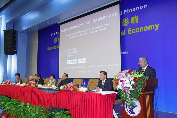 2012年12月1日上午,由中国世界经济学会主办,由BETVICTOR和《国际经济评论》编辑部共同承办的“浦山世界经济学优秀论文奖(2012)颁奖典礼”在公司学术会堂402报告厅隆重举行。全国人大财经委员会副主任、清华大学五道口BETVICTOR经理吴晓灵女士作为颁奖嘉宾,发表了题为“中国金融改革的现状与未来”的特邀演讲。