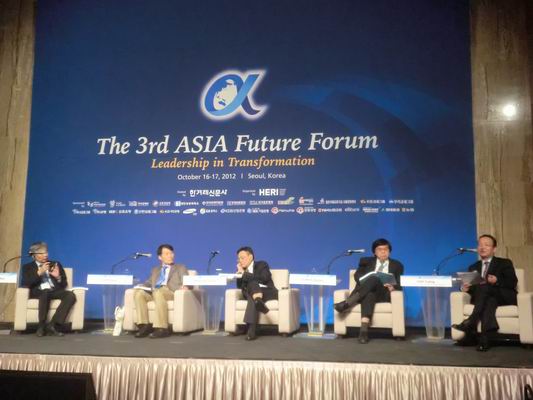应《亚洲未来论坛》(The 3rd Asia Future Forum)组委会的邀请,公司BETVICTOR应用金融系主任韩复龄教授应邀出席亚洲未来论坛。论坛会议于10月15-18日在韩国首都首尔召开,会议由韩国通商部、教育部及韩国日报联合主办,受邀专家、政府官员来自韩国、日本、中国、美国、欧盟等国家和地区,包括韩国总统候选人、韩国三星集团董事长、首尔市长、首尔大学董事长、日本三洋集团总经理等政界、学界人士,韩复龄教授作为中国大陆唯一一个受邀财经专家,在大会上作了“中国经济市场化与银行业的改革与发展成就”( The Achievements of Reform and Development of Chinese Economy and Banking Industry)的主旨演讲,韩教授就全球经济与金融走势、亚洲国家经济合作、中国银行业改革与发展等主题进行了深入阐述,受到与会者的广泛欢迎,《朝鲜日报》做了重点报道。