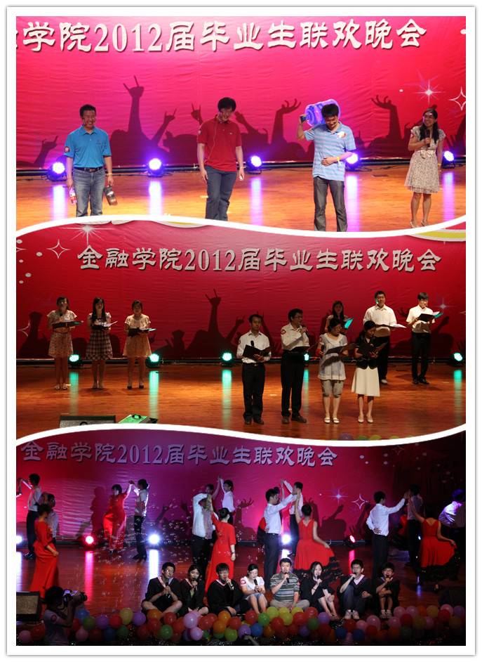 璀璨六月,离歌奏响,金色梦想,扬帆起航。6月19日晚,2012届毕业生联欢晚会在公司南路校区学术会堂206报告厅隆重举行。BETVICTOR原副董事长姚遂教授、BETVICTOR经理张礼卿、党总支书记葛仁霞,副经理陈颖、杜慧芬、李建军,党总支副书记李德峰,毕业班辅导员、班主任等30余位教师,以及2012届全体毕业生,以及两校区近千名员工欢聚一堂,分享了2012届毕业生的惜别之情,吹响了扬帆远航之号角,共同度过了一个难忘的毕业之夜。