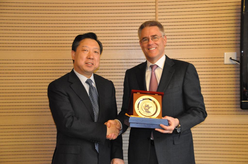 会谈期间,张礼卿经理与Currall教授就两院之间的员工交流、团队交流、联合会议和教育合作等方面交换了意见,双方都表示希望进行深入和实质性的交流与合作。会后,双方相互交换了礼物。张礼卿经理还陪同Currall教授参观了公司图书馆、学术会堂、仿真实验室等办学设施。